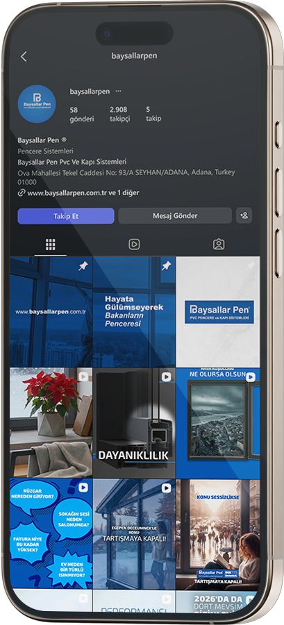 Baysallar Grup; konut, ofis ve ticari alanlarda ihtiyaç duyulan PVC pencere, kapı ve sürme sistemlerini projeye özel olarak planlıyoruz. Ücretsiz keşif ve doğru ölçülendirme ile başlayan süreci; profil–cam–donanım seçimleri, renk/laminasyon alternatifleri ve uygulama detaylarıyla birlikte netleştiriyoruz. Üretim aşamasından profesyonel montaja, teslim sonrası ayar ve destek süreçlerine kadar tüm adımları tek elden yöneterek uzun ömürlü, yüksek yalıtım performansına sahip ve estetik görünümlü çözümler sunuyoruz.